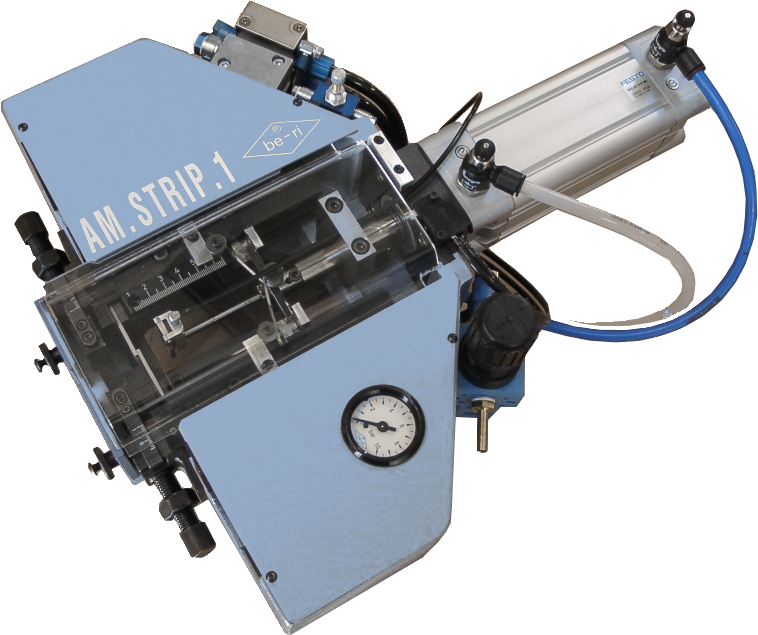 The AM.STRIP.1 is a universally applicable, semi-automatic wire stripping machine for robust industrial use and the economical production of small to medium-sized series.